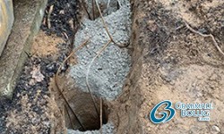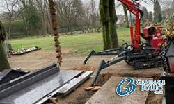Wir bohren z.B. für ein Tiefengrab 4 Säulen auf ca. 2.70m Tiefe, diese werden dann mit Beton gefüllt und mit Eisen zusätzlich verstärkt.